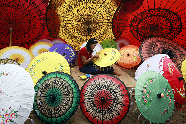 It is no longer needed for backpacking travelers to Myanmar to know the weather in Myanmar to find the best time to travel if carrying those paper made and bamboo framed parasols in numerous color and size. An excursion from an Inle Lake tour offers a pleasant visit to the paper factory where tourists are able to learn the umbrella hand making the process and get one as the commemoration of the vacation to Myanmar.