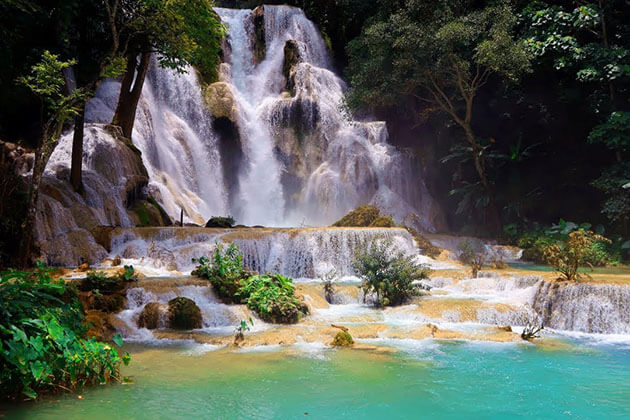 - Immerse into the clear water the majestic Kuangsi Waterfall – the most beautiful waterfall in Laos