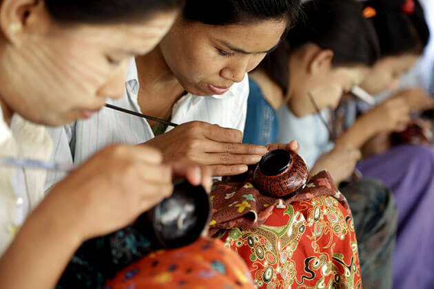 After that, gain more about the local culture with a visit to two workshops in Bagan which produce the most famous products in the region: lacquerware and woodcraft. Here you can spend time talking with the local artisan and watch them using their techniques to create their unique items.