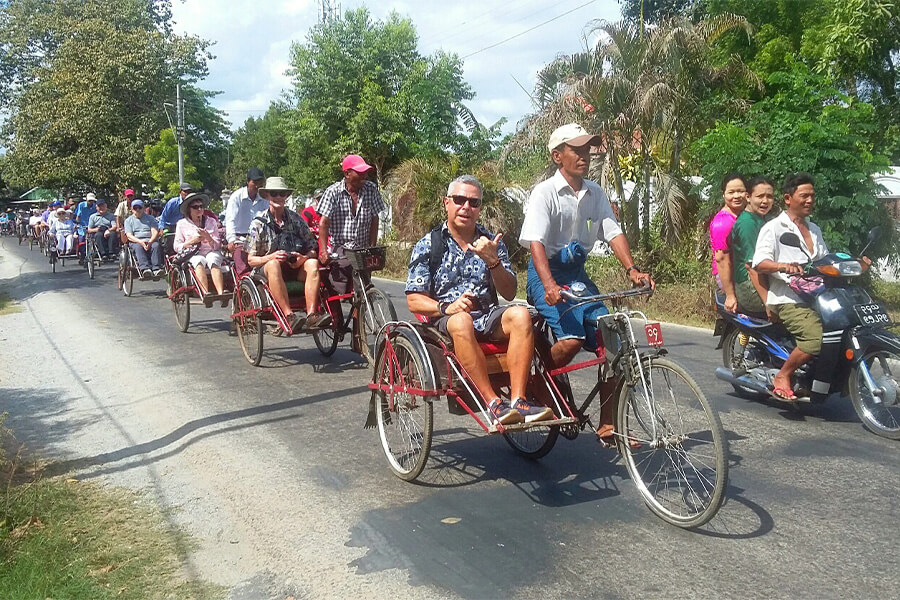 Hop back on the trishaw and wind through quiet streets. Make a stop at the “tomato house”, a warehouse-like structure where the tomatoes are sorted and priced for sale. Then continue past some of the many monasteries and nunneries in the town, stopping for photos as you go. Lunch at a local restaurant in Nyaung Shwe (paid on your own account).