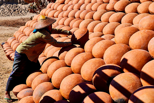 Follow your afternoon sightseeing with a trip to the quiet riverside Yandabo village. It is a fascinating gem where you will experience the real life of Burmese people. Take a stroll through the village and indulge in the peaceful aura of the rural village. If luckily, you will catch the iconic image of the local carry things on their head. We will visit a local family to learn more about the production of the region. You will quickly notice that they are immensely friendly and hospitable. If you wish, why don’t try your hands on making a pot on your own?