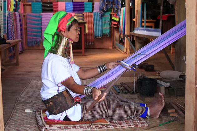 Next up, we visit the long-neck women who live harmoniously with nature and keep many unique customs including wearing big rings around their necks. Along the way back to the hotel, we will make a stop at the traditional village to discover the art, craft, and lotus weaving.