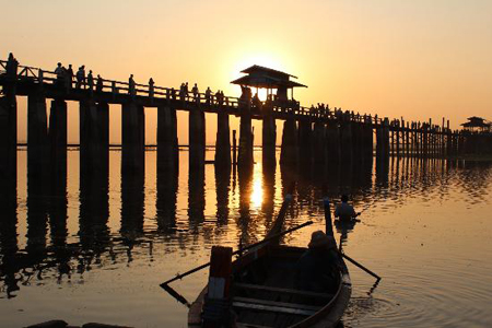 The nearby capital Amarapura was once the capital of the kings. Now, this place has become the capital center and a place to gather many skilled artisans and craftsmen of Myanmar: casting, weaving, tapestry, carvings craftsmen and artisans... The U Bein bridge which is 1.2 km from the state capital, made of teak (1 of the hardest and firmest kinds if timber, used for shipbuilding), through the Taungthaman Lake. Right across the Myintge River, Inwa city is also served as one of the capitals of Myanmar. The city remains only some monasteries are in good condition and some of the walls of the old city.